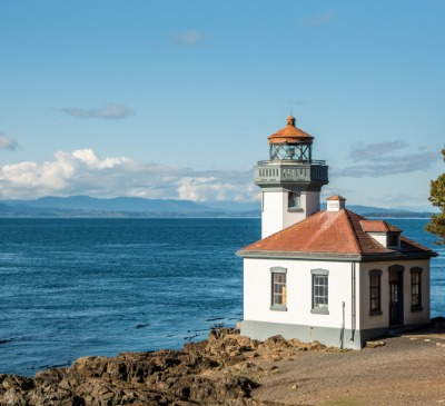 Cattle Point Lighthouse, on the southern tip of San Juan Island, was built in 1935, but a navigational lantern has been on watch here since 1888. Look for deer, eagles, seabirds, and marine mammals such as seals and sea lions from the shelter, picnic area and beach below. Whale Rocks, a collection of rocky islets popular with Steller sea lions, are visible offshore. When the wind is right, their grumbling can be heard for miles.