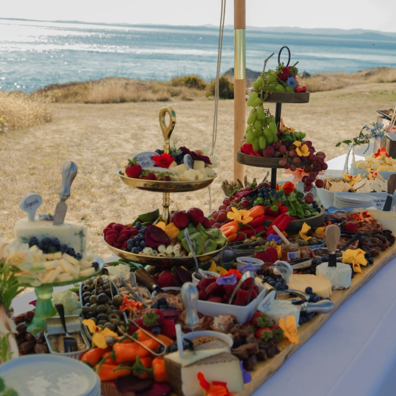Island chefs and caterers have access to some of the freshest seafood, produce, meats, and cheeses in the Pacific Northwest. Check out Blue Heron Catering, known for seasonal, locally inspired menus; Paellas San Juan, serving vibrant, made-to-order paella; Coho Restaurant, offering farm-to-table cuisine with refined flair; and Downriggers, celebrated for fresh seafood and waterfront views. Many island restaurants also cater for weddings, simplifying their restaurant dishes into a wedding buffet.